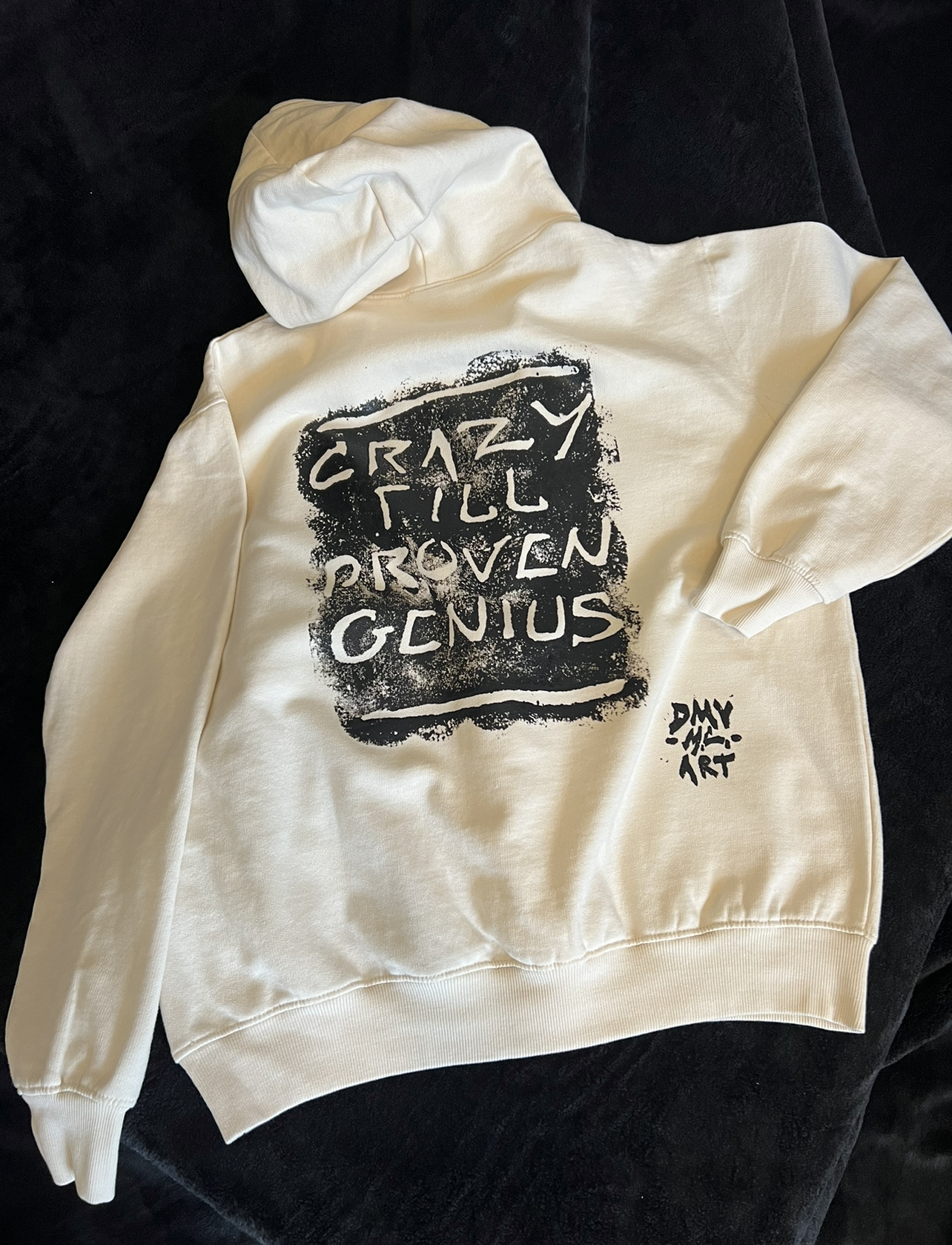 The “Crazy till Proven Genius” Line By D.C. Artist Meddie Carpenter, is a reminder to the wearer and the world that all genius is not immediately apparent. So keep going! ignore the noise and push through to greatness. Stand out and stand UP While wearing your Motivating blank canvas that is ready for your personal artistic additions as you grow, or keep it clean and minimal yet bold if that is your style, ether way be the Crazy one. But know Some* will see your genius that is masked only by time!