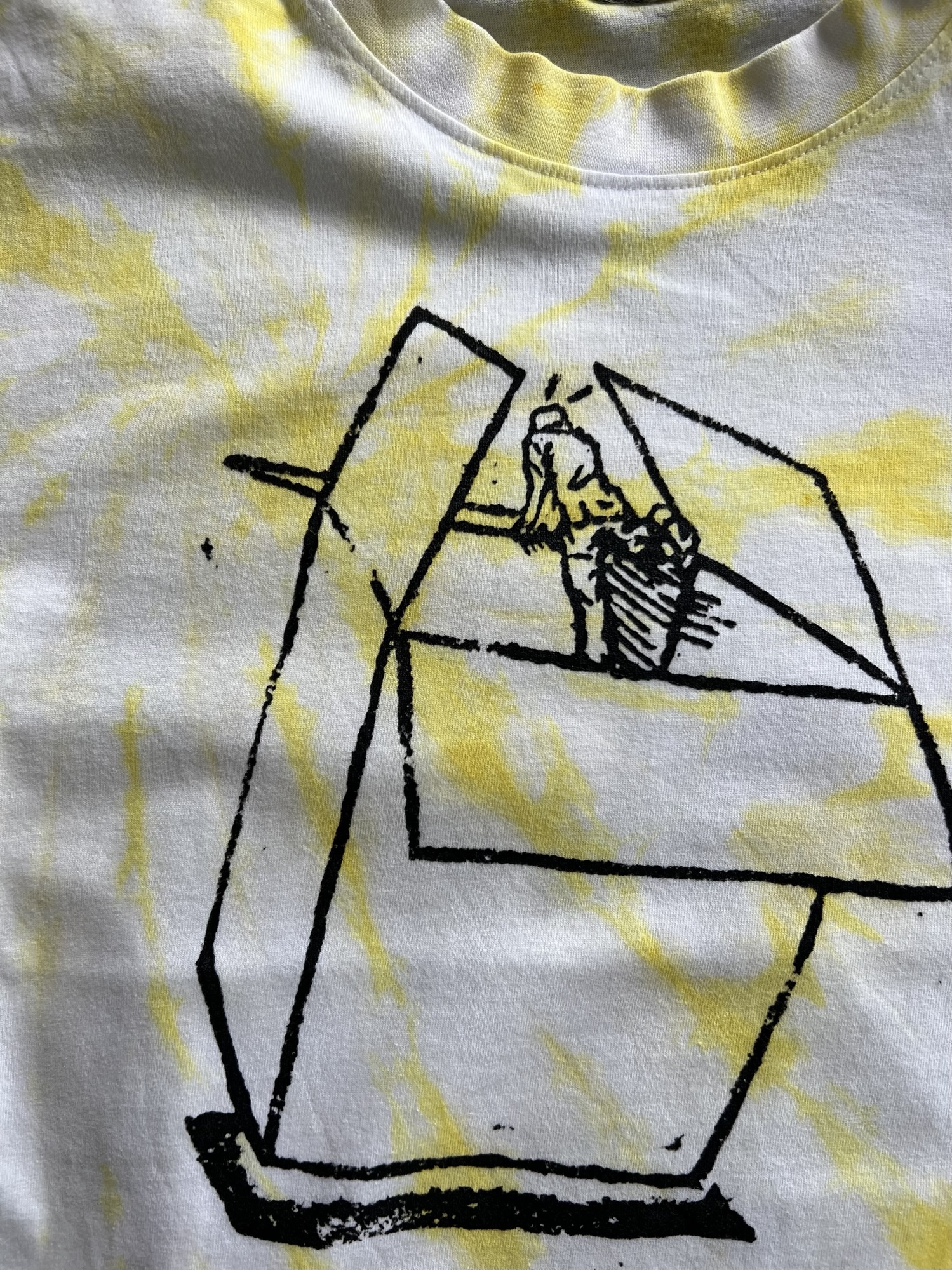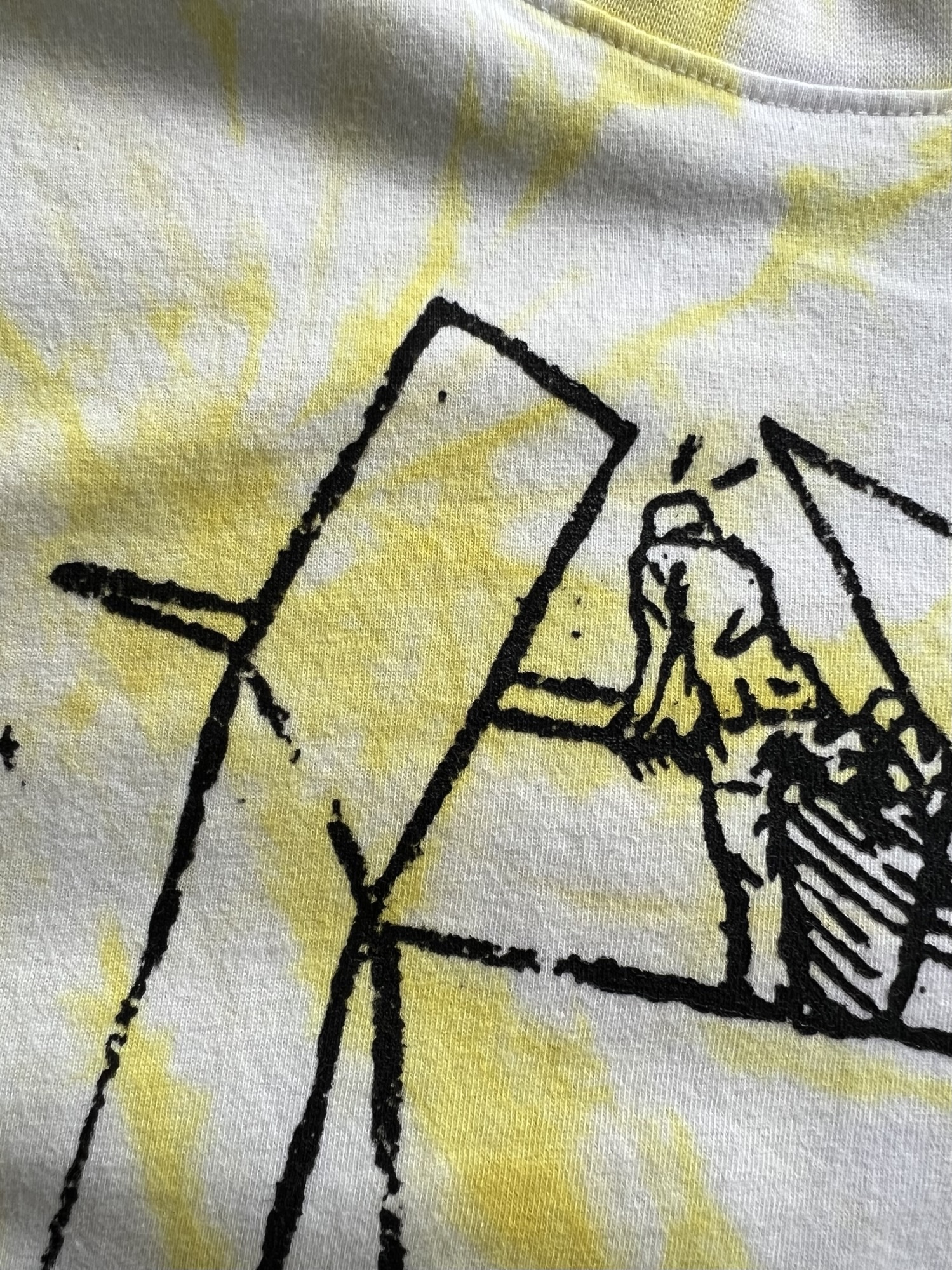 Yellow Twist Tie Die pattern Hand Printed By the Designer, Meddie Carpenter, MC. ! 100% cotton