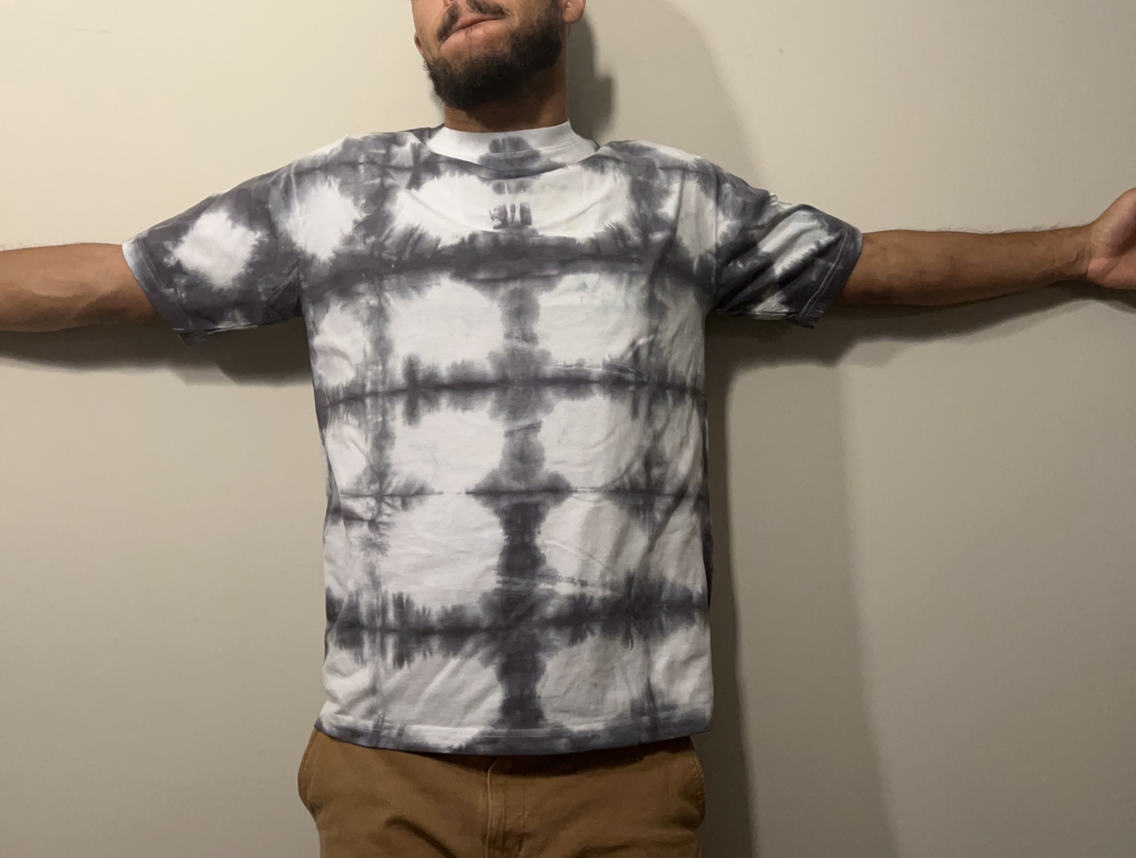 Hand dyed shirt. patters Scale may vary slightly.